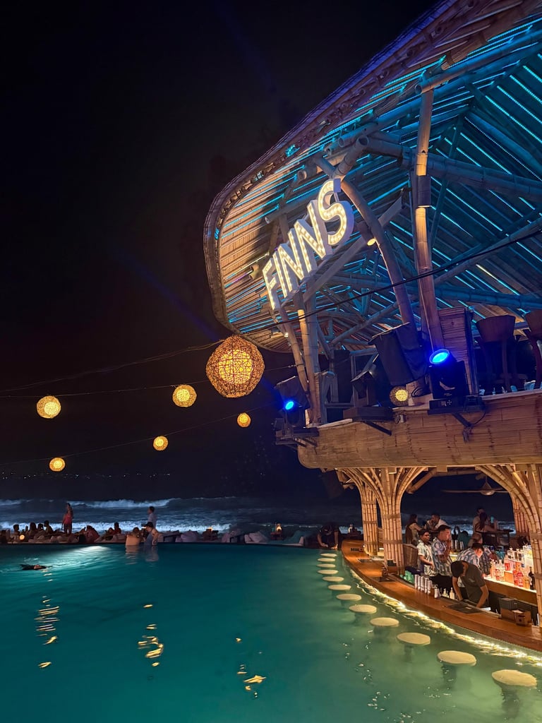 As the sun begins to set, unwind in style at Finns Beach Club — sip cocktails on a daybed, dip in the pool, and soak up the tropical vibe. If you’re still in party mode, head next door to Atlas Beach Club, Asia’s largest, for a lively and unforgettable finale to your Bali adventure.