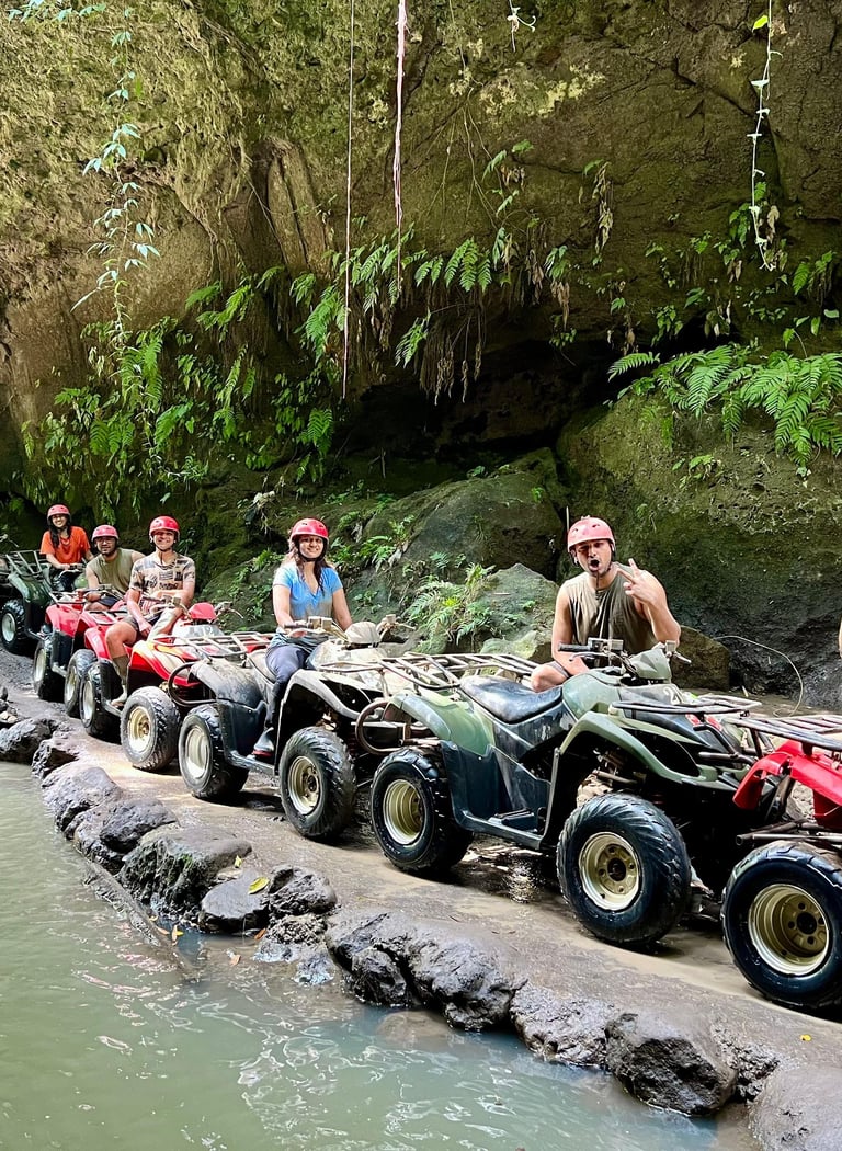 Start the day early with an adrenaline-pumping ATV ride in Ubud with Alasan Adventure. You'll cruise through muddy trails, lush jungle paths, and rice paddies — it’s the perfect dose of adventure for your Bali trip. After the ride, enjoy a well-earned lunch at Cretya Sunset Restaurant, set against panoramic views of rice terraces and jungle infinity pools.